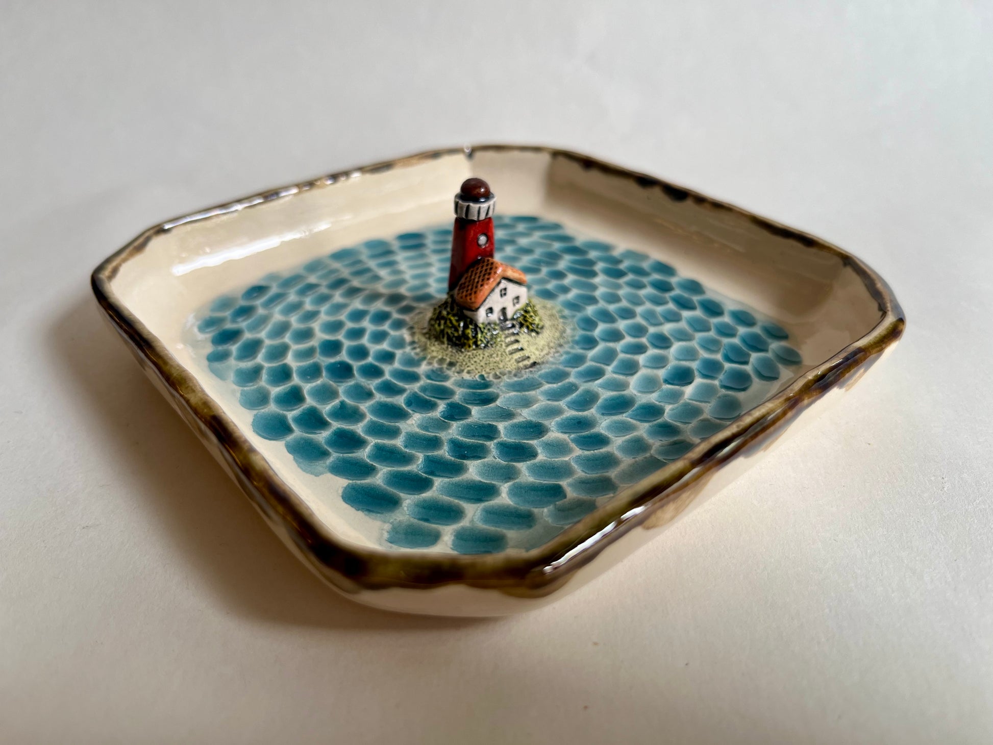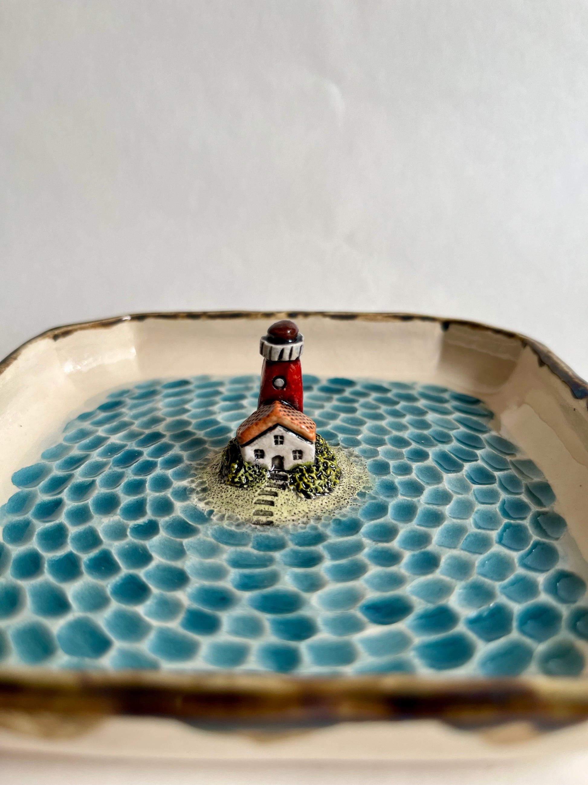 Lighthouse by the sea ceramic diorama